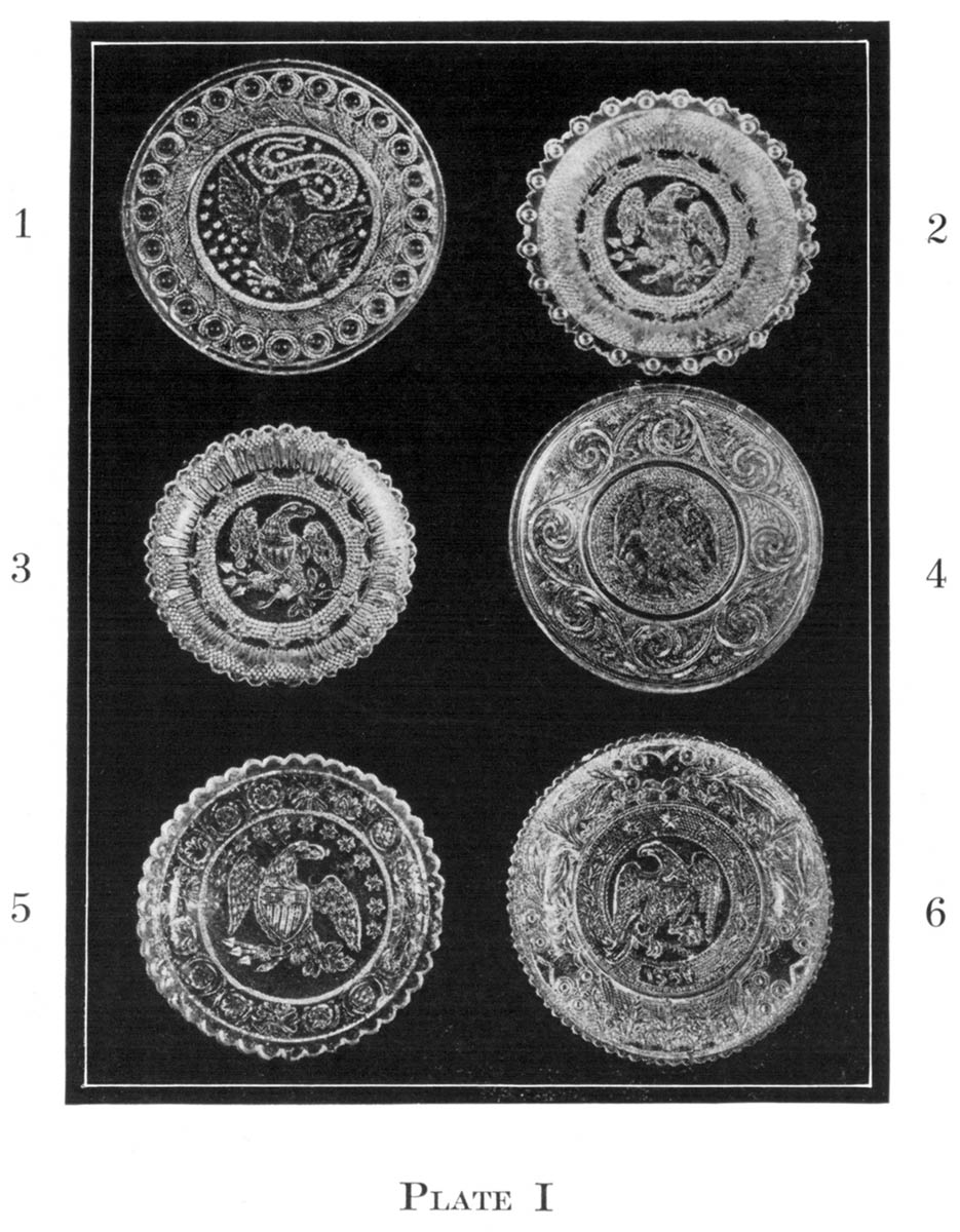 The author believes there were made during the first period many large dishes for table use to match the cup plates. These are necessarily rare as such objects were more expensive and more liable to breakage. To illustrate we have given specimens the additional designation of C when there is a cup plate of corresponding design and have affixed the measurements. The following dishes are rare and have in every instance been collected by the author from their original sources.