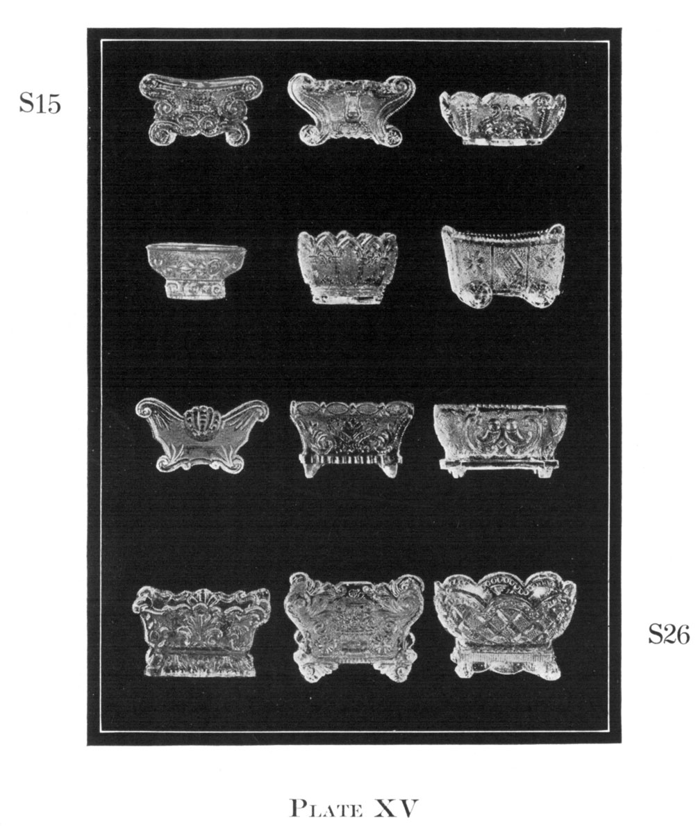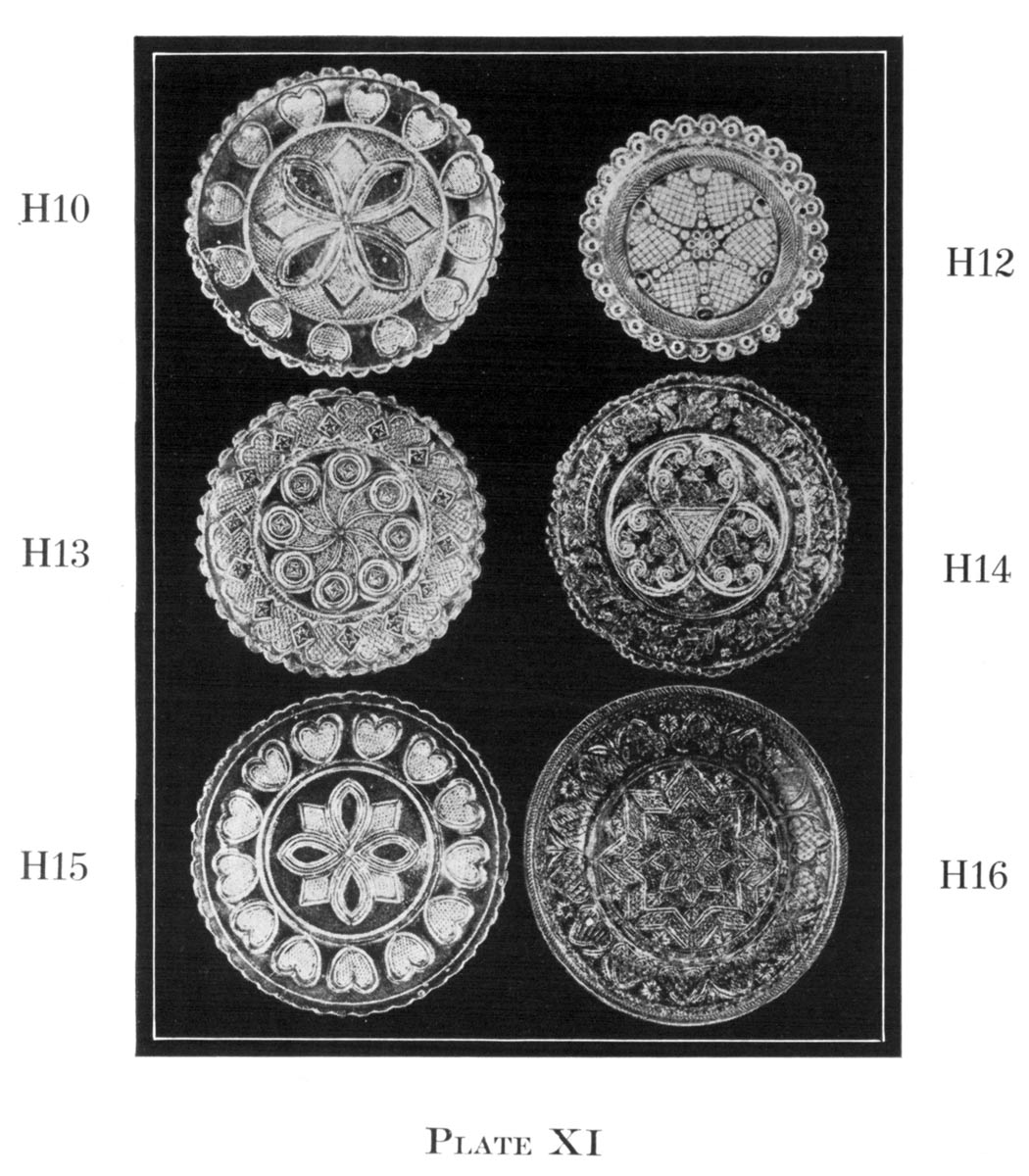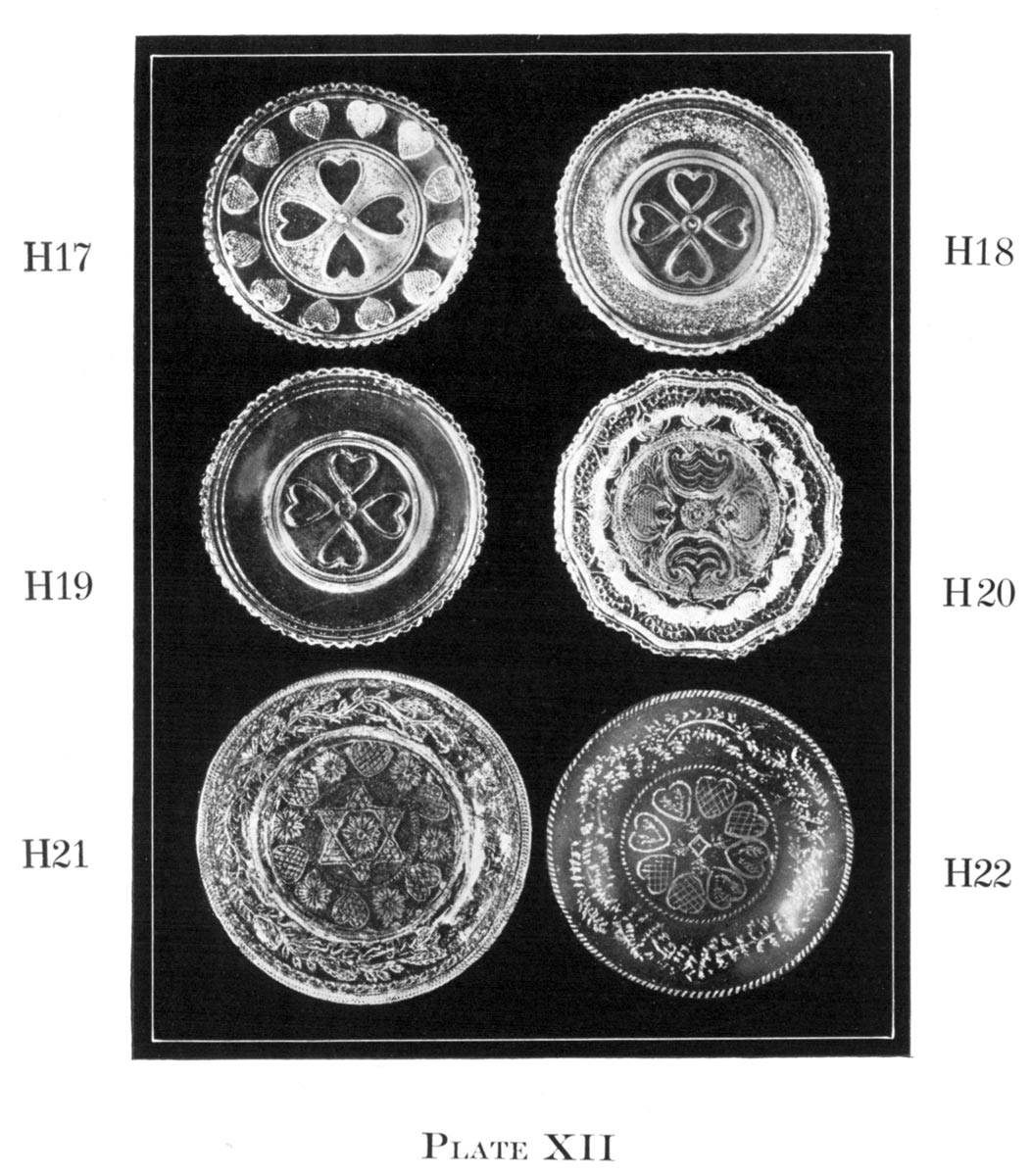 Types, colors, molds, historical data, and information regarding the Sandwich Glass Company and its output gathered from specimens collected by the author covering ninety-odd thousand miles by motor.