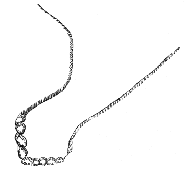 The glacière itself was approximately round in shape, and some twenty meters in diameter. At one place the rock wall was broken and we could look into a much « 4 » smaller inner cave or chamber. Into this we could not penetrate on account of a long, narrow crack or hole which yawned in the ice floor for a distance of some five or six meters and continued through the opening into the second chamber. We tried to cut our way along the side of the hole, but had to give it up, finding the ice too hard and our time too short. The crack or hole, whose sides were solid ice, proved conclusively that the ice in this glacière was many meters in thickness, for we could look a long way down into the hole, certainly for ten or twelve meters, until the ice sides disappeared in darkness, without any visible bottom. The hole cannot be spoken of as a crevasse, for, besides not looking like a crevasse, it was certainly formed by other causes than those which form the crevasses in glaciers, since there is, as a rule, no perceptible movement in subterranean ice. Doubtless, the hole was due to the drainage of the cave, which undoubtedly passed off through the hole. There may be, nevertheless, some little motion in the ice of this glacière, for it is evident that it is fed principally directly by the winter snows; which, whether as frozen or melted snow, descend gradually, by the force of gravitation, from the slope of the pit into the glacière.