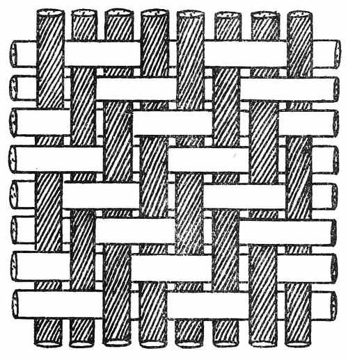 Figure 1 shows the simplest manner of interlacing warp and weft threads. This style of weave is called plain, calico, or "one-over and one-under" weave.