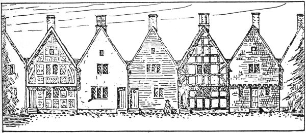 Figure 8 indicates an idea found at Salem, laid out in 1765, and elsewhere in the American colonies. A central square is left open and principal town buildings are built around it. At Raleigh, laid out in 1792, the square is very large, and contains the State Capitol. A central green belonging to the people, a place in which they might gather, is still a pleasant reminder of community life and order in those towns which possess them.