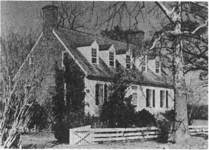 Figure 9 is a sketch of the big, sturdy house, its out-buildings, orchard, and gardens which, taken together, look like a self-sufficient farm. Our sketch of the surroundings is an estimate, based on the plan of the “Col. Palmer” property seen in Sauthier’s 1769 map of Bath (figure 10). The map shows the Palmer property “down town” on Water, or Main Street, which runs along Bath Creek, the house being placed directly on this business thoroughfare. The front room of the house was planned for business purposes, and so it has its own door to the street. Thus the chimney, which ordinarily would have been on this end wall, has been moved around the corner to the side. The house, thought to have been built in 1744, was sold to Colonel Palmer in 1764, just a few years before Sauthier came to Bath.