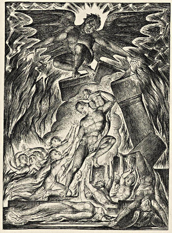The Destruction of Job’s Sons and Daughters. From the “Book of Job.” By W. Blake.