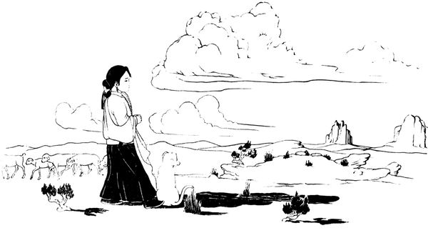 In Little Navajo Herder, we have brought together in one volume the pictured story of a year in the life of a little Navajo girl, which originally appeared in four separate books. In the first edition, which was prepared for classroom use in Federal Indian schools, the stories appeared in both English and Navajo. However, the popularity of Little Herder was not limited to the child readers of her own tribe. She has found her way into the hearts of Indian children throughout the nation. The universality of her appeal is indicated by increasing interest in her story by non-Indian children in home and school. Selections from her books have found their way into dozens of anthologies. This popularity with those who read only English has dictated this single volume edition in English. Again the delightful drawings by Hoke Denetsosie, a full-blood Navajo artist, are used.