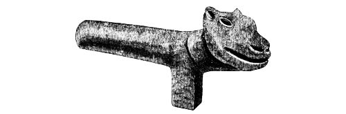 The implements designed for the use of tobacco or other narcotic herbs, occupy a prominent place among the works of art of which the sacrificial mounds are the principal depositories. In accordance with the almost universal custom of barbarous and semi-civilised nations, the Mound-Builders devoted to their dead whatever had been most prized in life, or was deemed valuable for some talismanic charm. Hence the Mississippi mounds, and the ancient tombs of Mexico and Peru, disclose the same kind of evidence of the past as Wilkinson has deduced from the catacombs of Egypt, or Dennis from the sepulchres of Etruria. But in addition to this, the remarkable religious rites of the American Mound-Builders have preserved not only their altars, but the offerings laid upon them. The perishable garments of the dead have necessarily disappeared; and of instruments or utensils of wood or other combustible materials it is vain to expect a trace, where even metal has melted, and the stone been calcined in the blaze of sacrificial fires; but articles of copper and stone, of fictile ware, and even of shell, ivory, and bone, have escaped the destructive flame, and withstood the action of time. In such enduring characters inscriptions are legibly graven upon the altars of the Mound-Builders. Let us try to translate their records into the language of modern thought.