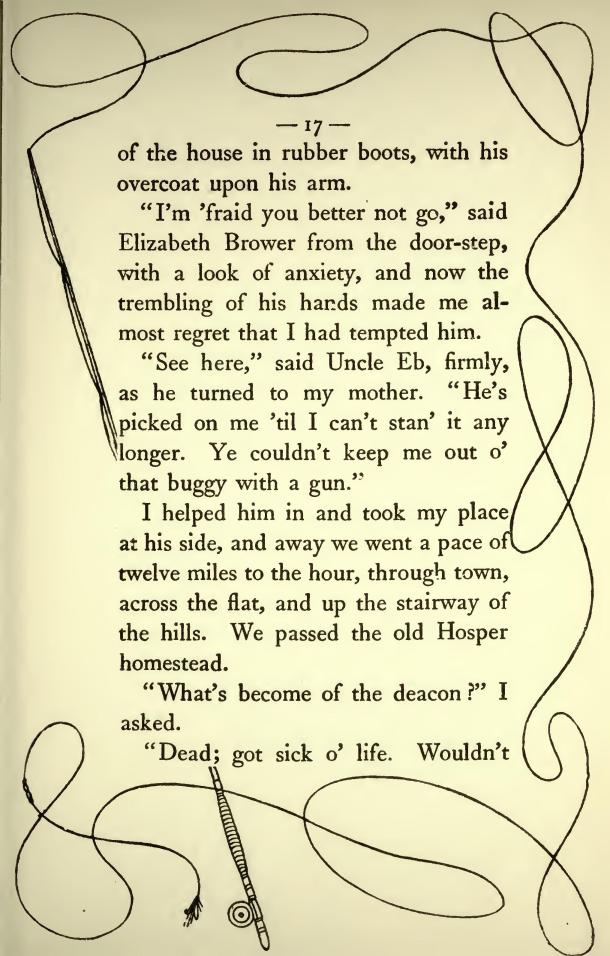 “See here,” said Uncle Eb, firmly, as he turned to my mother. “He's picked on me 'til I can't stan' it any longer. Ye couldn't keep me out o' that buggy with a gun.”