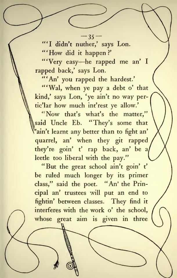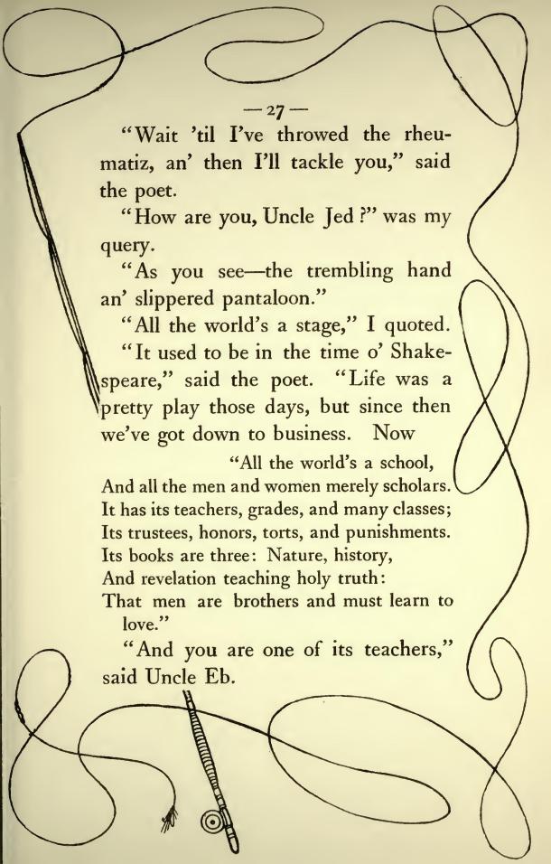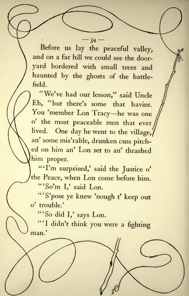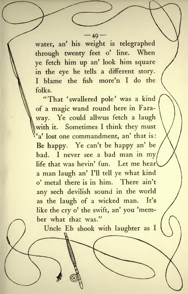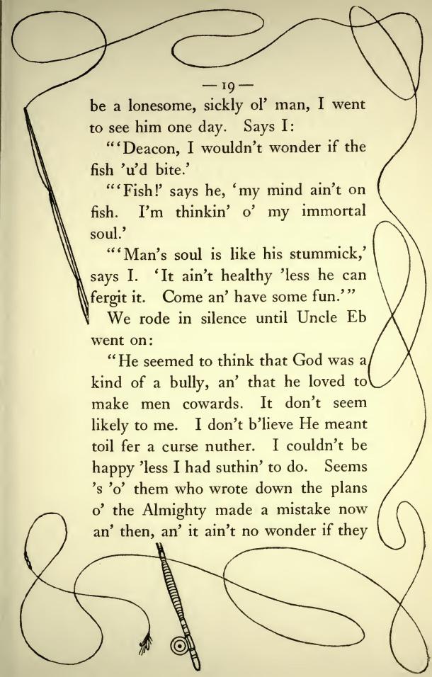 “'Man's soul is like his stummick,' says I. 'It ain't healthy 'less he can fergit it. Come an' have some fun.'.rdquo; We rode in silence until Uncle Eb went on: