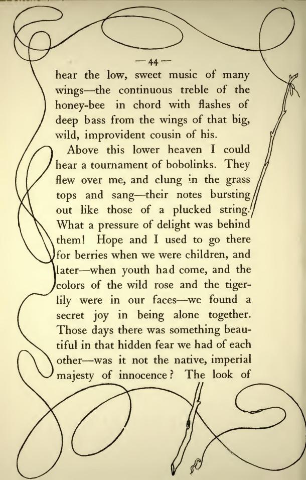 were possible. I know well how feebly I shall do my task, but now, at last, a time is come when it seems to call me, and I can begin it with some hope and courage. I shall try not to write a book, nor a tale even, but mainly to gather a few flowers, now full grown, in the garden of remembrance. You that see it growing lovelier in the lengthening distance will understand me.