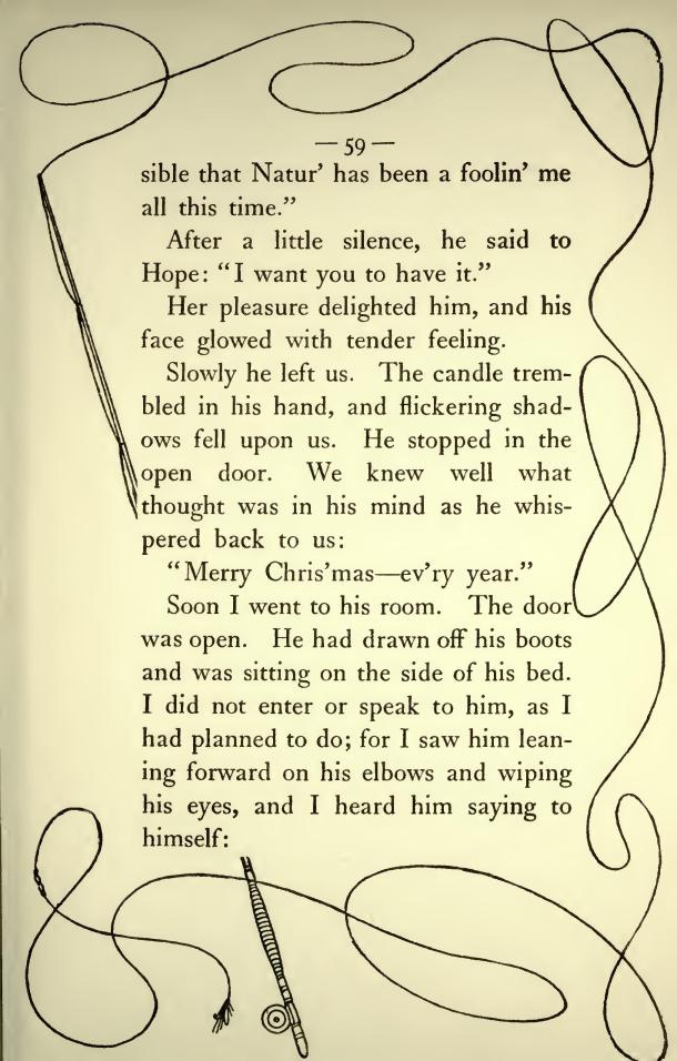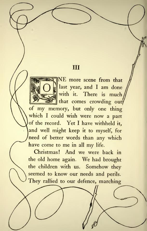 house and stable were in ill repair. Evil days had come to the neat and cleanly fireside, where in the old time Santa Claus had blessed us, and I had heard the cry of the swift and felt the touch of love and sorrow.