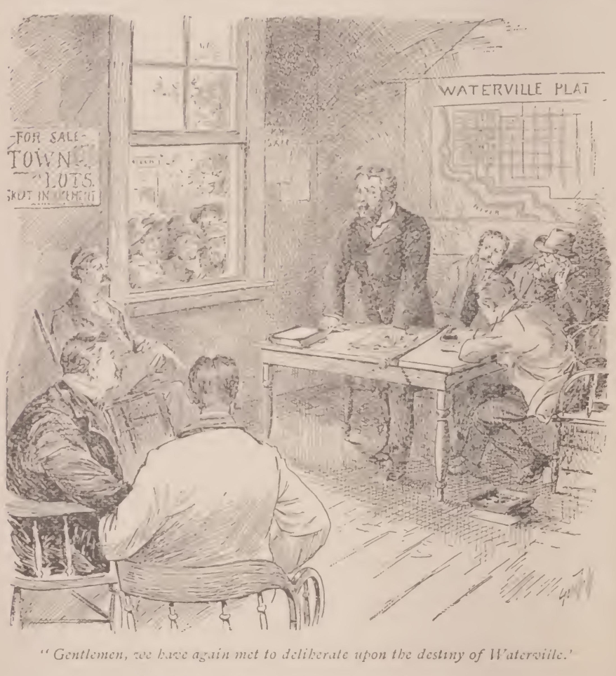 There is hardly a cross-road hamlet without its hotel, and usually a “Dick Ballard” presides. “Brainy men.” such as composed the Waterville Town Company, may be found wherever a new town is building, while a “Rufus Grim” is usually the autocrat of the mining camp.