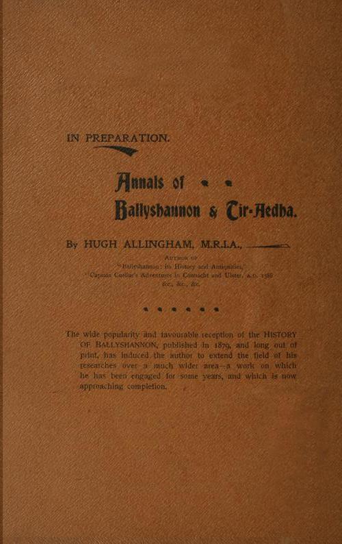 The favourable reception which was accorded to the paper entitled "The Spanish Armada in Ulster and Connacht," which appeared in Vol. I., Part III., April, 1895, of The Ulster Journal of Archæology, and the continued interest in the subject, which seems rather to increase as the literature becomes more extensive, has induced me to re-write the paper, and add much information I was not possessed of when the first paper was printed. Mr. Crawford's most valuable contribution, which forms the second part of this book, should at least justify the present publication. To Francis Joseph Bigger, M.R.I.A., my best thanks are due for the use of copious notes and references, which have been of material assistance.