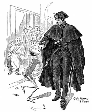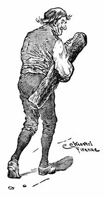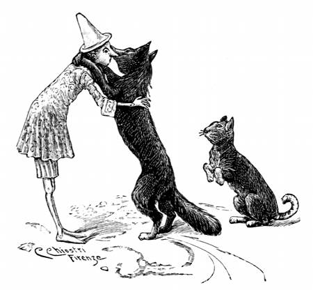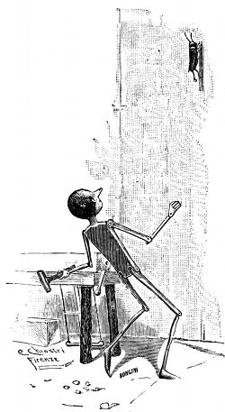 Questa volta il povero maestro Ciliegia cadde giù come fulminato. Quando riaprì gli occhi, si trovò seduto per terra.