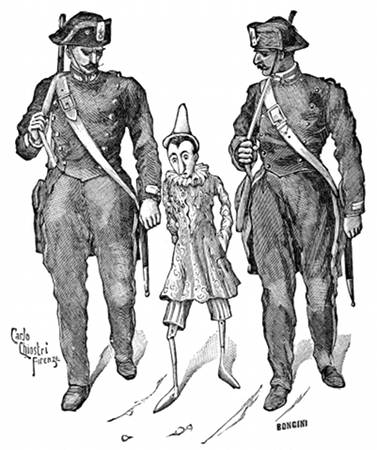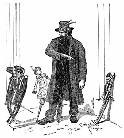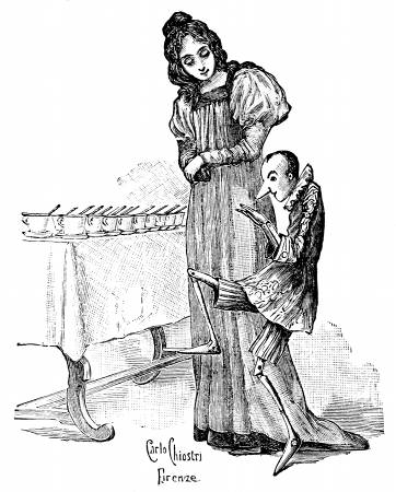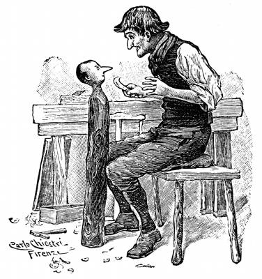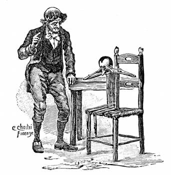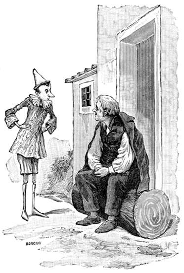 — Ho pensato di fabbricarmi da me un bel burattino di legno: ma un burattino maraviglioso, che sappia ballare, tirar di scherma e fare i salti mortali. Con questo burattino voglio girare il mondo, per buscarmi un tozzo di pane e un bicchier di vino: che ve ne pare?