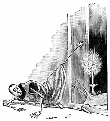 E così dicendo, agguantò con tutt'e due le mani quel povero pezzo di legno, e si pose a sbatacchiarlo senza carità contro le pareti della stanza.