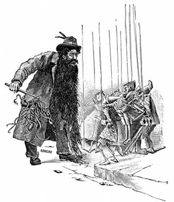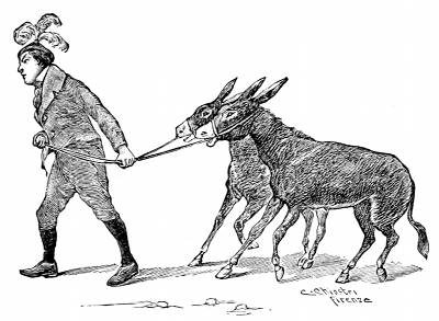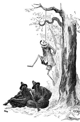 Finito il combattimento, mastr'Antonio si trovò fra le mani la parrucca gialla di Geppetto, e Geppetto si accòrse di avere in bocca la parrucca brizzolata del falegname.