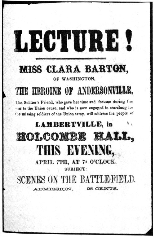 | 1865 | Clara Barton works at Andersonville, Georgia, to establish national cemetery |