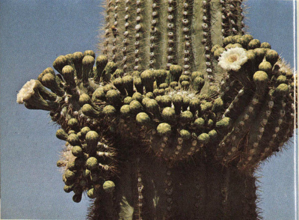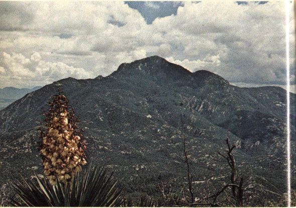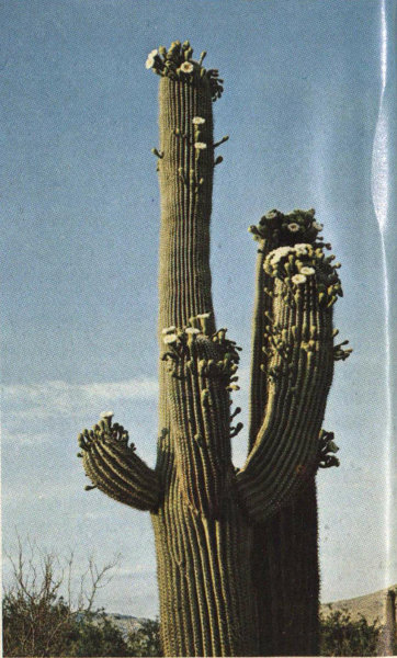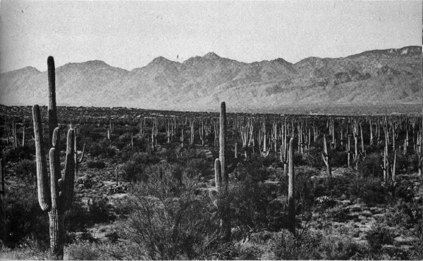 Scattered through the wide, lonely Sonoran Desert, isolated mountain ranges raise jagged blue silhouettes against the sky. The high ones wear a crown of dark pines and a speckled mantle of oaks. Lapping against their feet is the desert sea, studded with the green masts of giant saguaro cactuses rising above a motley crew of tough, strange, often handsome subordinates.