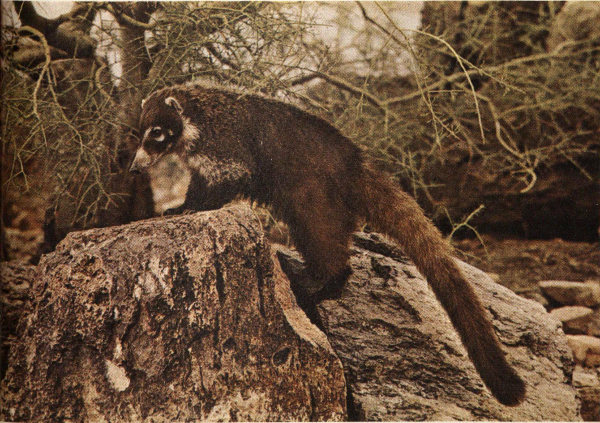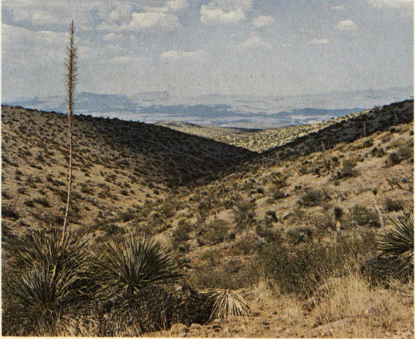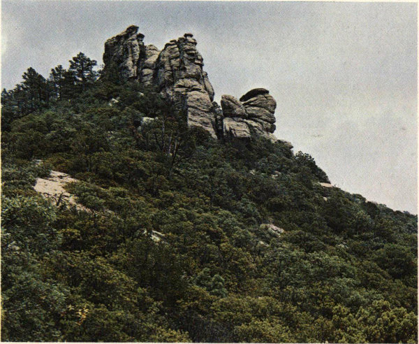 Animals, to some extent, reflect the same dichotomy of origins we have seen in the plants. Thus, on the mountaintops supporting 6 pine and fir forests, a northern contingent of animals predominates, while on the lower slopes and desert the fauna has a Mexican character. The canyons and oak-pine forests of middle elevations in southeastern Arizona are particularly exciting, because in these biological islands, isolated by surrounding desert, live many “Mexican” species of animals found nowhere else in the United States. Naturally, mountain ranges nearest the border—such as the Huachucas and Chiricahuas—have the greatest numbers of Mexican specialties; but the Rincons have their share too.