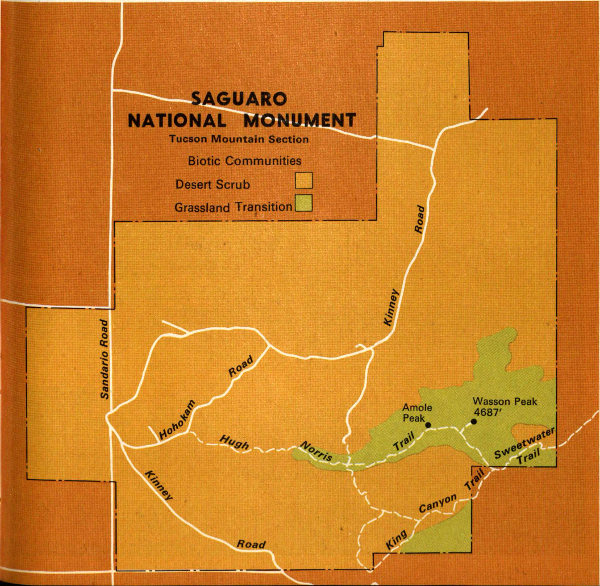 This book is a simple account of the natural history of Saguaro National Monument. It is intended to help you understand the relationships between land, climate, plants, wild animals, and man in the environment of a hot desert. While it includes brief profiles of many representative species, it is not intended to serve as a guide to the monument. It does indicate where the several distinctive natural communities exist, and when and where to look for certain plants and animals. For identification purposes, you will need field guides.