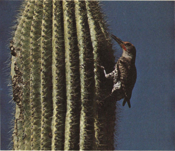 But even between the two sections of Saguaro National Monument there are differences. There is the obvious fact that the Tucson Mountains are much lower and smaller in mass than the Rincons. And there is the not-so-obvious fact that the Tucson Mountain Section extends to lower elevations (2,200 as opposed to 2,700 feet). These conditions are reflected in the somewhat warmer environment of the western section. This helps to explain why certain Sonoran Desert plants and animals here reach their northeastern limits; among them are ironwood, desert iguana, desert horned lizard, western shovel-nosed snake, sidewinder, desert kangaroo rat, and the Le Conte thrasher. The Rincon Mountain Section, by virtue of its higher elevations, has plants and animals—such as ponderosa pine, Steller’s jay, and whitetail deer—not found in the western section.