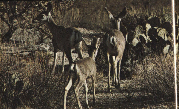 Animals are less restricted than plants to particular vegetation belts, but they, too, show a zonation with altitude. You must look, for instance, in the paloverde-saguaro community (part of the desert scrub type) for kangaroo rats and cactus wrens; in the oak-pine woodland for Mexican jays; and in the ponderosa pine forest for whitetail deer and tassel-eared squirrels.