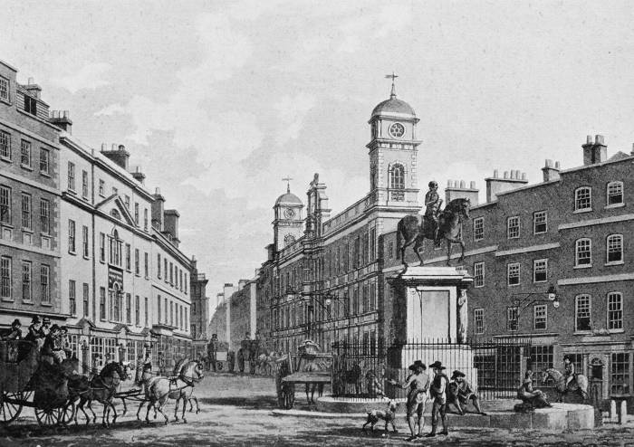 FAÇADE OF THE PUMP ROOM, BATH, IN THE EIGHTEENTH CENTURY