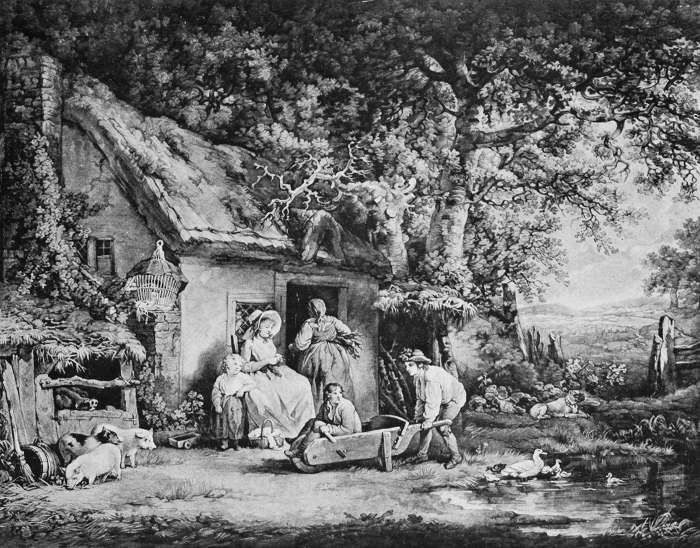 Among contemporary landscape painters, Richard Wilson, who has been called “the founder of English Landscape,” lived until 1782. But his views, though vastly more natural than the stilted conventional style that preceded them, seem to our modern eyes, trained to what is “natural,” still to be too much conventionalised. [9] Among others the names of Gillray, Morland, Rowlandson stand out, all well on the way to fame while Jane was still a child.
