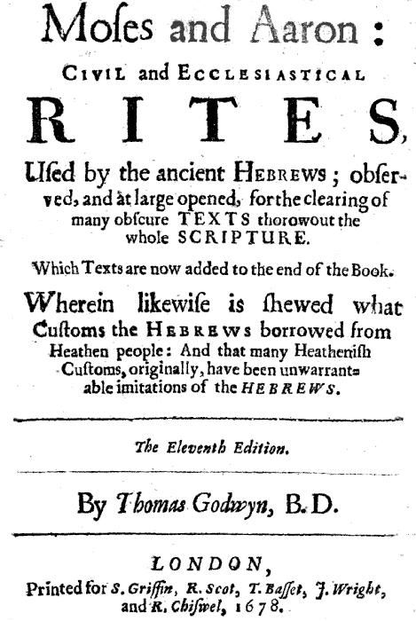 That many have no better acquaintance with Christ and his Apostles, is, because they are such strangers with Moses and Aaron: Were Customes antiquated thorowly known, many difficulties in Scripture would appear Elegancies; and the places which now (through obscurity) dishearten the Reader, would then become sweet invitements to an unwearied assiduity in perusing those sacred Oracles. If my present labour shall give such light to some obscure passages, that thereby Gods people shall be drawn on with the greater delight, to the exercising themselves in reading of Holy Writ, it shall not repent me of my tedious travels in these Rites and Customes, of Generations long since past; which whosoever undertaketh, shall find the way long and thorny, the path over-grown and hardly disernable; the Guides few to direct, and those speaking in strange Languages; and many apt to discourage him, because themselves are either lazy, and will not, or lame and cannot walk the same way. But now (through Gods assistance) being come to the end of my Journey, the discoveries made on the way, such as they are (and such some are, as not observed before) humbly crave your Lordship’s protection.