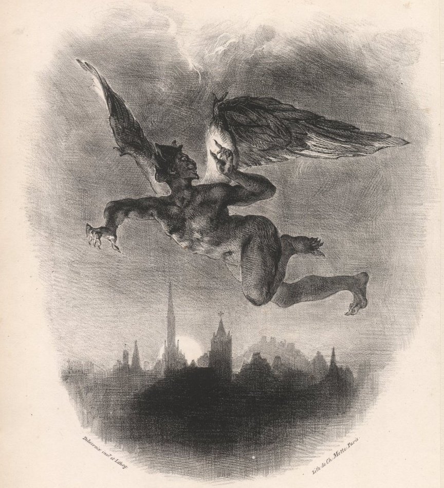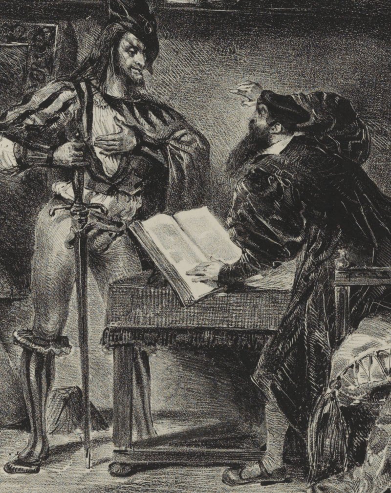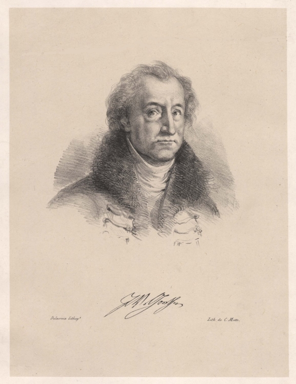 Frontispiece: Johan Wolfgang von Goethe par Eugène Delacroix (Source: Faust, tragédie de M. de Goethe, traduite en français par M. Albert Stapfer. C. Motte (Paris) 1828 - Gallica Bnf)