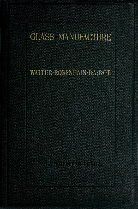 The Project Gutenberg EBook of Glass Manufacture, by Walter Rosenhain This eBook is for the use of anyone anywhere in the United States and most other parts of the world at no cost and with almost no restrictions whatsoever. You may copy it, give it away or re-use it under the terms of the Project Gutenberg License included with this eBook or online at www.gutenberg.org. If you are not located in the United States, you'll have to check the laws of the country where you are located before using this ebook. Title: Glass Manufacture Author: Walter Rosenhain Release Date: August 5, 2016 [EBook #52724] Language: English Character set encoding: UTF-8 *** START OF THIS PROJECT GUTENBERG EBOOK GLASS MANUFACTURE *** Produced by Chris Curnow, Charlie Howard, and the Online Distributed Proofreading Team at http://www.pgdp.net (This file was produced from images generously made available by The Internet Archive)