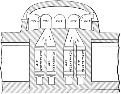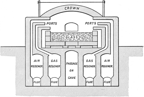 | Fire-clay and silica-brick—Manufacture of glass-melting pots—Drying and first heating of pots—Blocks for tank and other furnaces—Uses of silica brick—Furnaces—Coal-fired and gas-fired furnaces—Gas producers—Regenerative furnaces, principles and construction of Siemens’ furnaces—Recuperative furnaces—General arrangements of modern tank furnaces—Relative advantages of tank and pot furnaces | p. 54 |