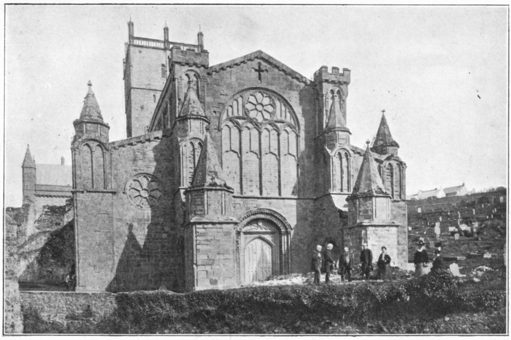 The illustrations are mostly from the author’s own photographs, but his special thanks are due to Mr. A. David and Mr. Morgan, to whose hearty co-operation on the spot a large meed of whatever success they may attain is unhesitatingly given. The general views are from photographs by Valentine, Frith and Co., and Poulton; the general measured drawings are reduced from the elaborate plans of J. Taylor Scott, F.R.I.B.A., which won the silver medal of the Royal Institute of British Architects in 1882; a few illustrations are taken from old prints in the author’s collection, and for some reproductions we have been indebted to the excellent plates in Messrs. Jones and Freeman’s History of St. David’s.