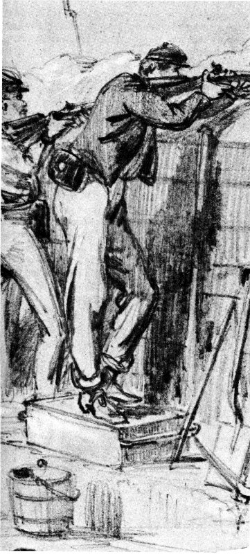 The last scene in the battle occurred shortly after 1 p.m. 33 Mahone had called up a third brigade, and an attack spearheaded by the fresh unit succeeded in gaining the slopes of the crater. Some of the Union men, overcome with exhaustion and realizing the helplessness of their situation, surrendered; but others continued to fight. At one point where resistance centered, the Confederates put their hats on ramrods and lifted them over the rim of the crater. The caps were promptly torn to shreds by a volley of minié balls. Before their foe could reload, Mahone’s forces jumped into the crater where a desperate struggle with bayonets, rifle butts, and fists ensued.