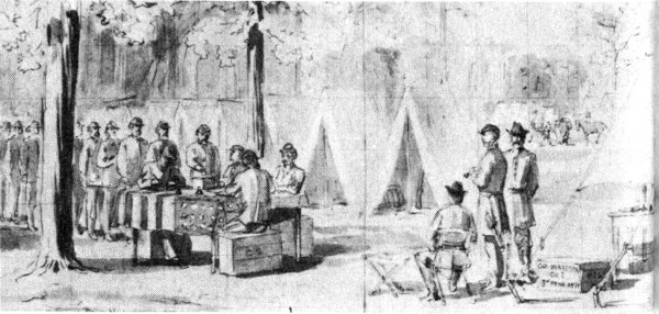 Pennsylvania soldiers voting, 1864. Volunteers considered themselves citizens first, soldiers second. These men, and thousands like them, took time out from their deadly work to vote in the Presidential election, doubtless, as the campaign song ran, “For Lincoln and Liberty, too.”