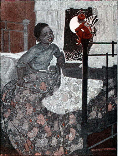 And then a naughty little Blackie, who was sitting on Watermelon Pete’s bedpost, just hoping that he would want to get out of bed and get into mischief, said, “I know where there are some watermelons. Farmer Brown has some down in his watermelon patch.”