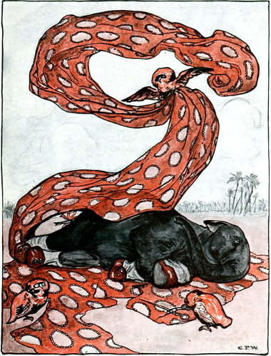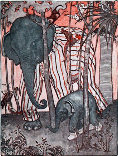 But Baby Elephant liked it, and was very proud of his pretty new things, and promised his Daddy he would keep them all very nice. And when he got home he ran and kissed his Mammy Elephant, who had just begun to wonder where he and Daddy had been all day.