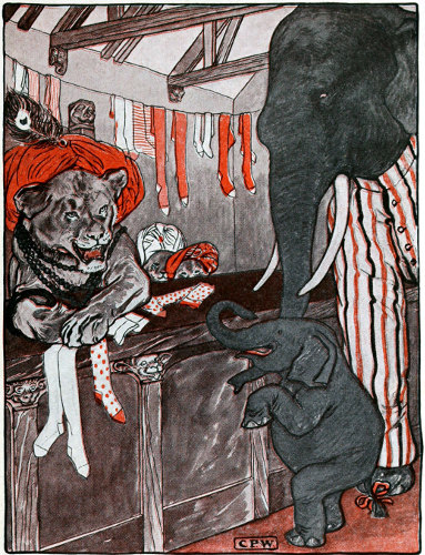 “Good morning, Mrs. Tiger,” said Daddy Elephant, very politely indeed. “Have you some shoes that you could sell me for my little Baby Elephant?”
