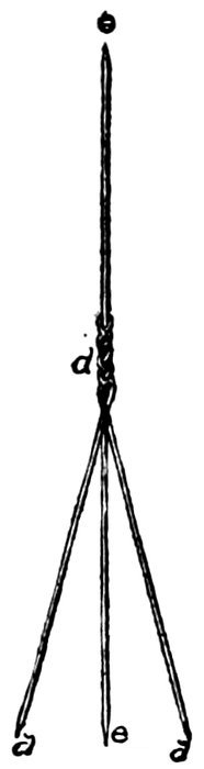 A nickel-plated acorn, as shown in the accompanying cut, makes a very fine finish on the point of a polished horn. B is a wire stem attached to the acorn, and is intended for fastening it to the horn. They are made as follows: If made of metal, they are cast on the stem and then turned. If brass, they are polished; but if iron, turned and then bronzed, painted or nickel-plated. If made of horn, first put in the stem and then turn and polish them. To put them on the horn, saw off the point of 114the horn, drill a hole in the end of same, the size of the stem, put a little glue in the hole and drive the stem in tight. The horn should be polished before putting the knob on. Round knobs are also very nice, put on in the same way. This way of putting them on is much better and easier than the old way of screwing them on.