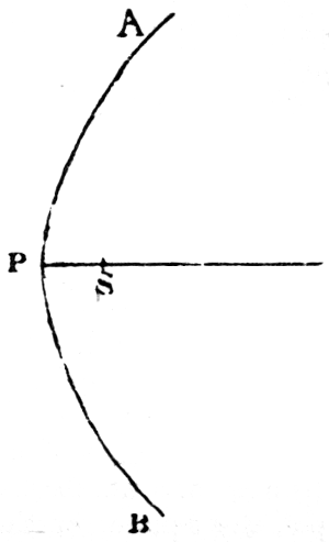 Newton also ascertained that a body projected (N. 20) in space (N. 21) will move in a conic section (N. 22), if attracted by a force proceeding from a fixed point, with an intensity inversely as the square of the distance (N. 23); but that any deviation from that law will cause it to move in a curve of a different nature. Kepler found, by direct observation, that the planets describe ellipses (N. 24), or oval paths, round the sun. Later observations show that comets also move in conic sections. It consequently follows that the sun attracts all the planets and comets inversely as the square of their distances from its centre; the sun, therefore, is the centre of a force extending indefinitely in space, and including all the bodies of the system in its action.