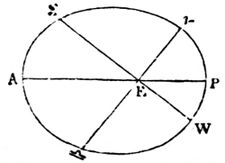 The mean distance of a planet from the sun is equal to half the major axis (N. 42) of its orbit: if, therefore, the planet described a circle (N. 43) round the sun at its mean distance, the motion would be uniform, and the periodic time unaltered, because the planet would arrive at the extremities of the major axis at the same instant, and would have the same velocity, whether it moved in the circular or elliptical orbit, since the curves coincide in these points. But in every other part the elliptical, or true motion (N. 44), would either be faster or 9slower than the circular or mean motion (N. 45). As it is necessary to have some fixed point in the heavens from whence to estimate these motions, the vernal equinox (N. 46) at a given epoch has been chosen. The equinoctial, which is a great circle traced in the starry heavens by the imaginary extension of the plane of the terrestrial equator, is intersected by the ecliptic, or apparent path of the sun, in two points diametrically opposite to one another, called the vernal and autumnal equinoxes. The vernal equinox is the point through which the sun passes in going from the southern to the northern hemisphere; and the autumnal, that in which he crosses from the northern to the southern. The mean or circular motion of a body, estimated from the vernal equinox, is its mean longitude; and its elliptical, or true motion, reckoned from that point, is its true longitude (N. 47): both being estimated from west to east, the direction in which the bodies move. The difference between the two is called the equation of the centre (N. 48); which consequently vanishes at the apsides (N. 49), or extremities of the major axis, and is at its maximum ninety degrees (N. 50) distant from these points, or in quadratures (N. 51), where it measures the excentricity (N. 52) of the orbit; so that the place of the planet in its elliptical orbit is obtained by adding or subtracting the equation of the centre to or from its mean longitude.