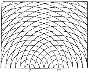 On account of the reciprocal action of matter, the stability of the system depends upon the intensity of the primitive momentum (N. 59) of the planets, and the ratio of their masses to that of the sun; for the nature of the conic sections in which the celestial bodies move depends upon the velocity with which they were first propelled in space. Had that velocity been such as to make the planets move in orbits of unstable equilibrium (N. 60), their mutual attractions might have changed them into parabolas, or even hyperbolas (N. 22); so that the earth and planets might, ages ago, have been sweeping far from our sun through the abyss of space. But as the orbits differ very little from circles, the momentum of the planets, when projected, must have been exactly sufficient to ensure the permanency and stability of the system. Besides, the mass of the sun is vastly greater than that of any planet; and as their inequalities bear the same ratio to their elliptical motions that their masses do to that of the sun, their 12mutual disturbances only increase or diminish the excentricities of their orbits by very minute quantities; consequently the magnitude of the sun’s mass is the principal cause of the stability of the system. There is not in the physical world a more splendid example of the adaptation of means to the accomplishment of an end than is exhibited in the nice adjustment of these forces, at once the cause of the variety and of the order of Nature.