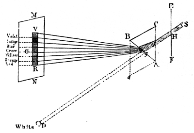 Constitution of Light according to Sir Isaac Newton—Absorption of Light—Colours of Bodies—Constitution of Light according to Sir David Brewster—New Colours—Fraunhofer’s Dark Lines—Dispersion of Light—The Achromatic Telescope—Homogeneous Light—Accidental and Complementary Colours—M. Plateau’s Experiments and Theory of Accidental Colours
