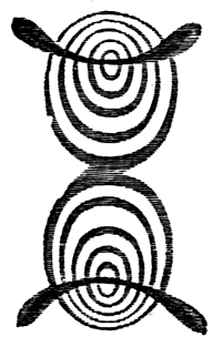 1. An enormous ring seen obliquely with a dark centre and a small star at each extremity.