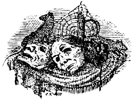 Man kann, bei dem ungewissen Licht, in Zweifel sein, ob man sich in der Rüstkammer eines alten Schlosses, in einem Antiquitätenmagazin oder bei einem Maskenverleiher befindet.