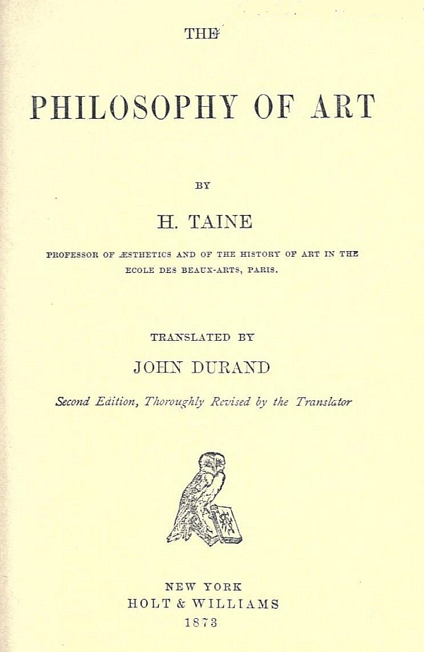 Since the publication of the first edition of the "Philosophy of Art" seven years ago, in London, its author has become deservedly popular, and especially in this country. His writings are sought for, read and translated both in England and on the continent of Europe, and it would be but refining gold to say aught in his praise. Like every man of genius he has, as time moves on, improved in his order of thought and in his wonderfully artistic style. His latest work, "On Intelligence" ranks him as high among thinkers, as his former works among men of letters.
