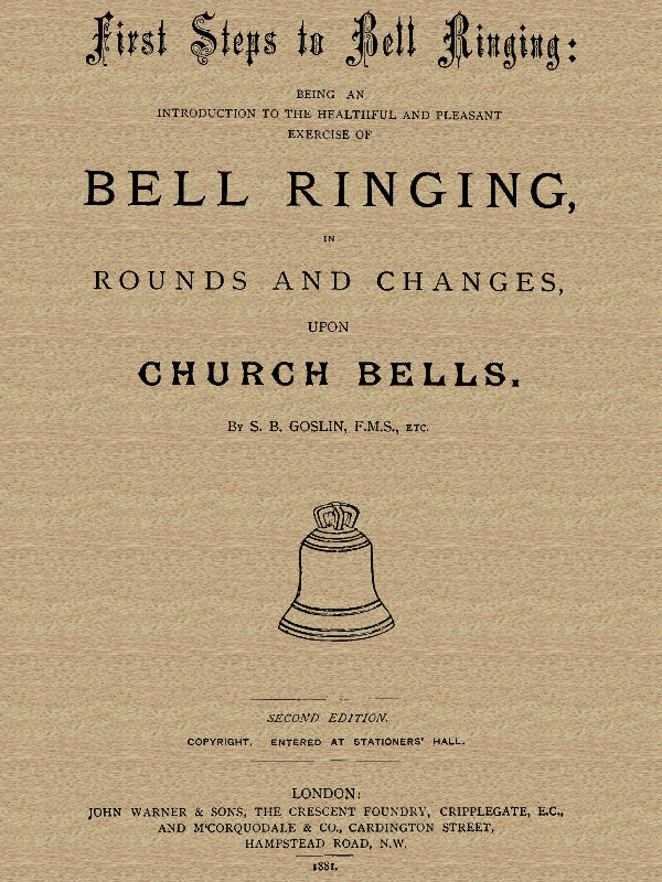 The appreciation and successful issue of the first edition of this work is duly acknowledged by the Author, as well as the many expressions of approval from persons at home and in foreign parts. It is a source of satisfaction and gratification to know that the attempt has produced a large amount of interest, and has also been the means of producing some ringers in several of our Colonies, as well as working up a desire for and supply of other productions, such as the second edition of “Banister’s Change Ringing,” Wigram’s new, better, and enlarged “Change Ringing Disentangled,” and “Snowdon’s Rope Sight,” which are worthy of a place in every bell student’s and every ringer’s library.