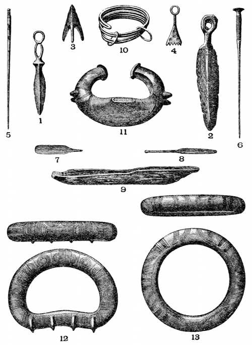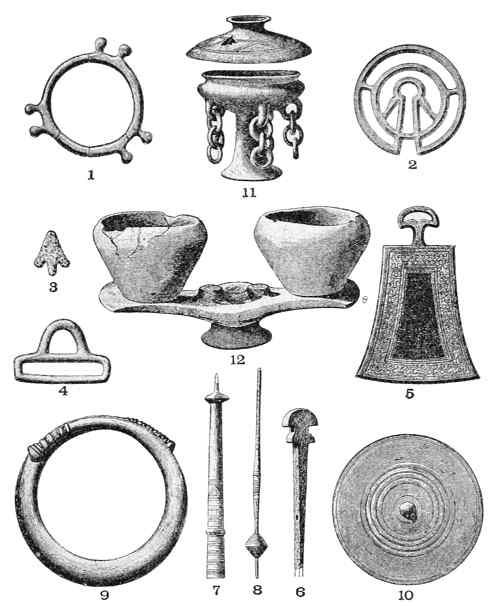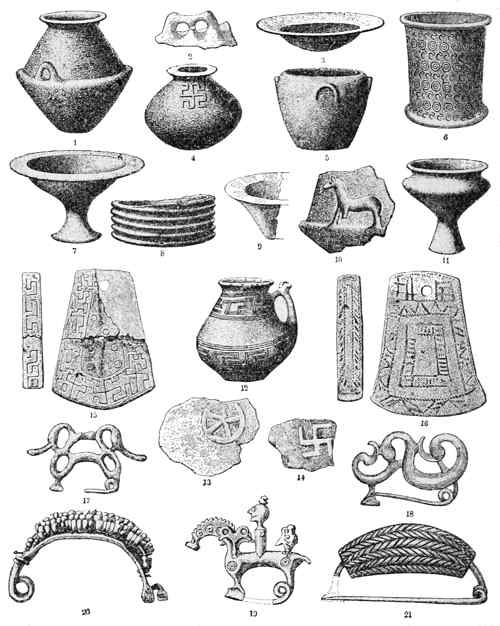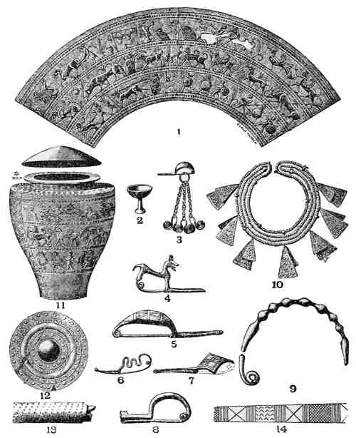 La parte da me rifatta ed ampliata, sulla quale desidero di richiamare soprattutto l'attenzione degli studiosi, è quella paletnologica, o più propriamente preromana, che, anche dopo la pubblicazione del Bullettino di paletnologia italiana e dell'opera magistrale del Montelius, era rimasta monca e insufficiente, nè poteva ricevere luce dal lavoro speciale del Regazzoni sulla Paleoetnologia (Milano, Hoepli, 1885), poichè quest'opera è quasi totalmente priva di quelle illustrazioni che sono indispensabili a ben distinguere e a ritenere le differenze fra età ed età, fra tecnica e tecnica; per questa parte presi appunto a modello le belle tavole del Montelius.