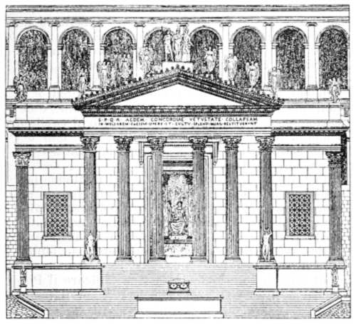 153. H. Thédenat, Le Forum romain et les forums impériaux, Parigi, 1898. Cfr. Melani, Archit., 3.ª ediz., tav. X (Ricostruzione).
