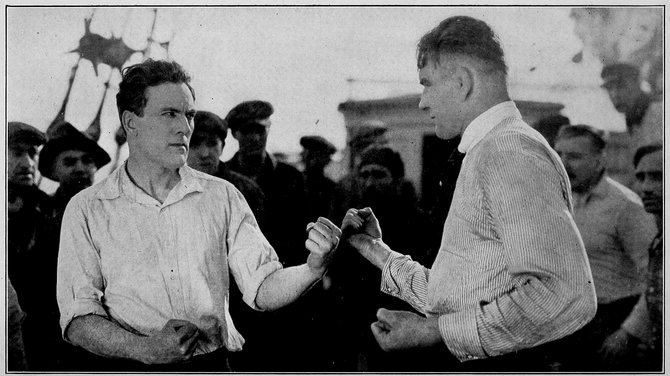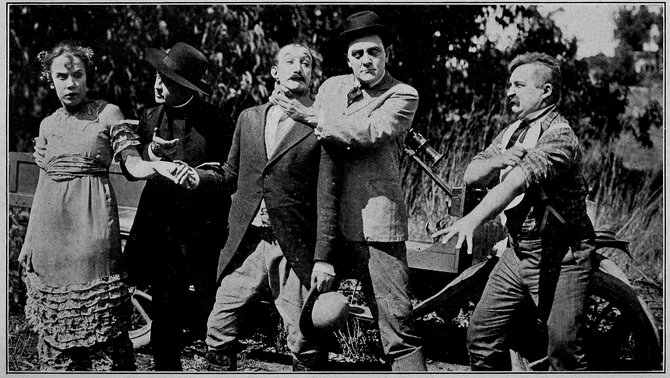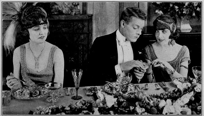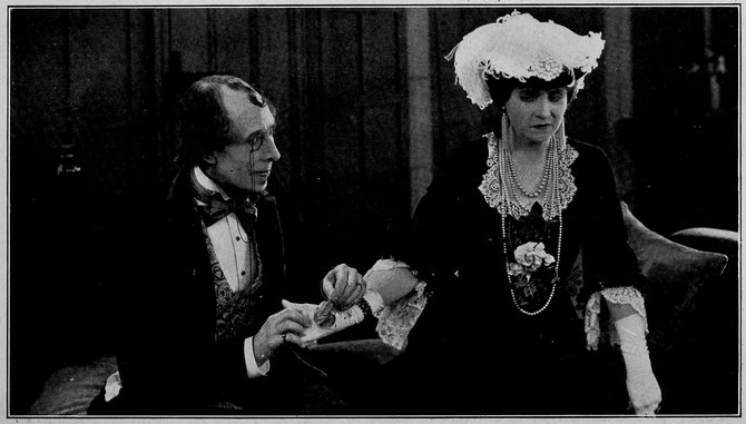 The case holds the same with all the other emotions of life. Perhaps with the case of love it is a bit different. For in the matter of other emotions the director may grant that someone else has experienced them in greater 17degree than he. But with the matter of his own romance or romances—no! All directors have no hesitancy in claiming, only to themselves of course, that theirs is the greatest in the world. Consequently there is no line C, but just the point. It is stationary. The director follows it neither up nor down to reach out for some similar point on another arc. Thus it is that romantic scenes are quite the most frequently done realistically and properly of all the emotional scenes contrived for the screen. This time the director's conceit does not stand in his way.