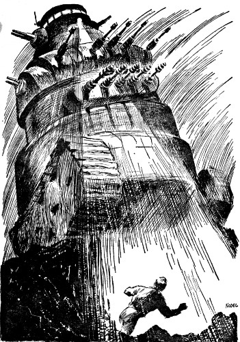 The guns traversed, clattering emptily. Beyond the fence the floodlight played for a moment longer against the Bolo, then moved on across the ramp, back, across and back, searching....